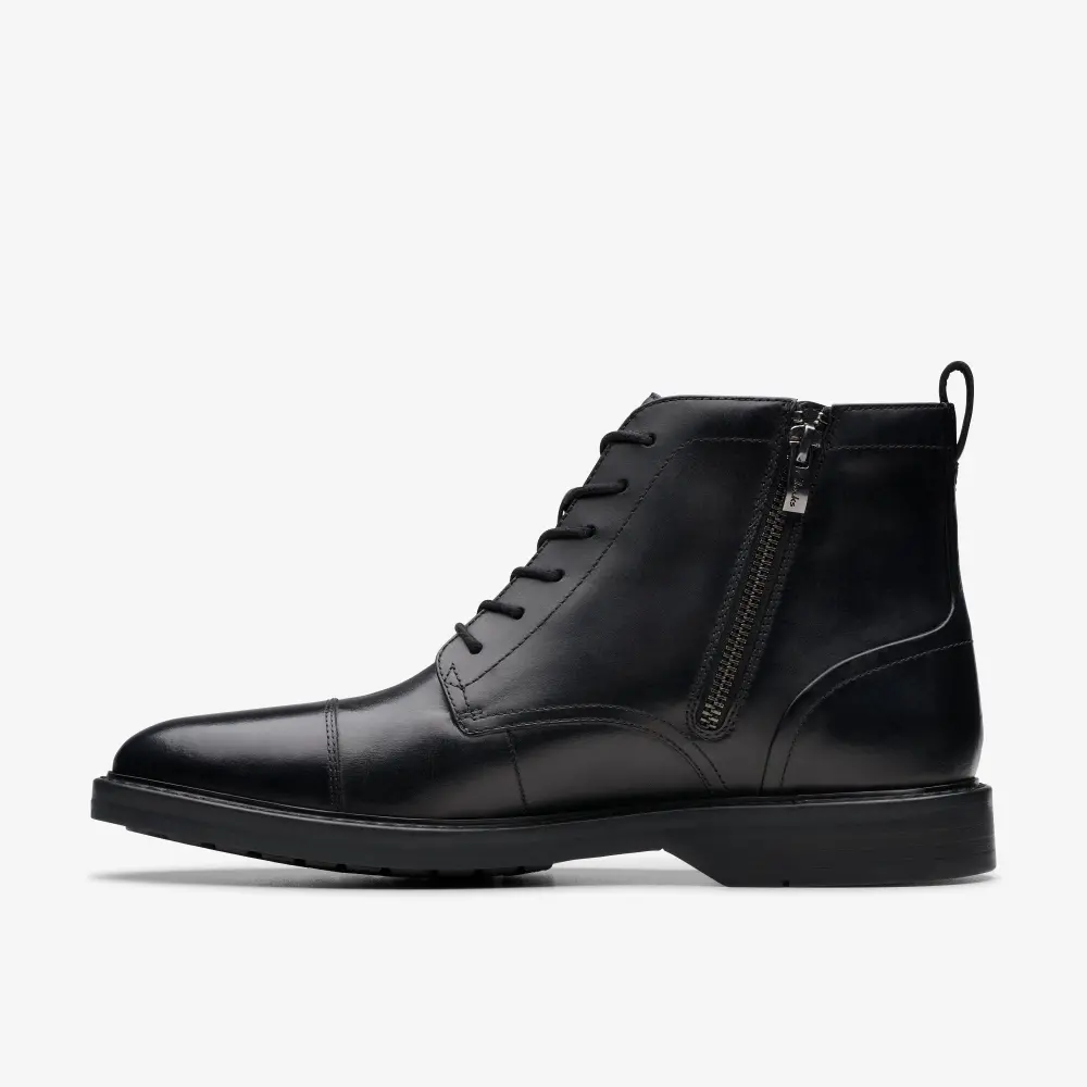 Mens Aldwin Cap Black Leather Oxford Boots