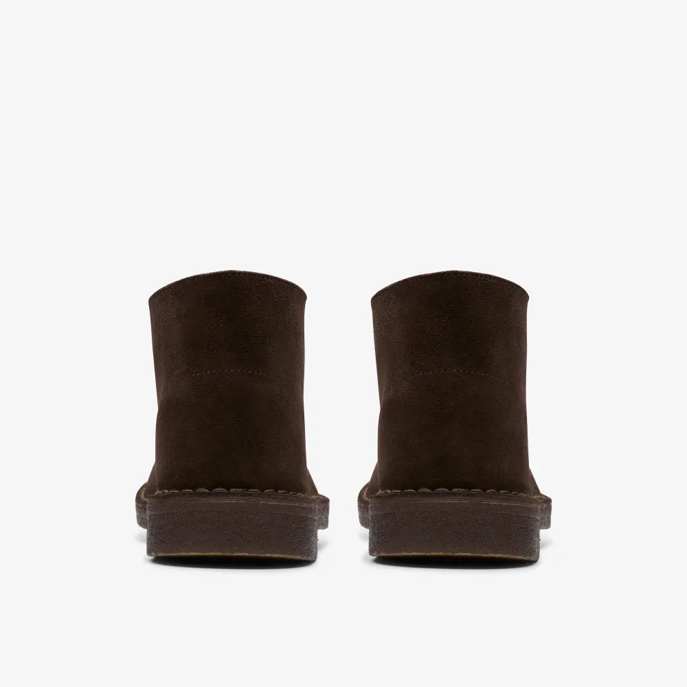 Cultural cachet and design DNA: no shoe is quite like the Clarks Originals Desert Boot. Born in the '50s, its minimal, progressive style sparked a worldwide footwear revolution – worn by beatniks, mods, Britpop bands, and Jamaican rude boys. And every design detail today remains true to that first pioneering pair. Here, the boot’s crafted, clean lines are enhanced with premium brown suede and finished with an unfussy lace fastening. The authentic crepe sole completes this distinctive silhouette. Instantly recognizable, forever iconic. A true original.