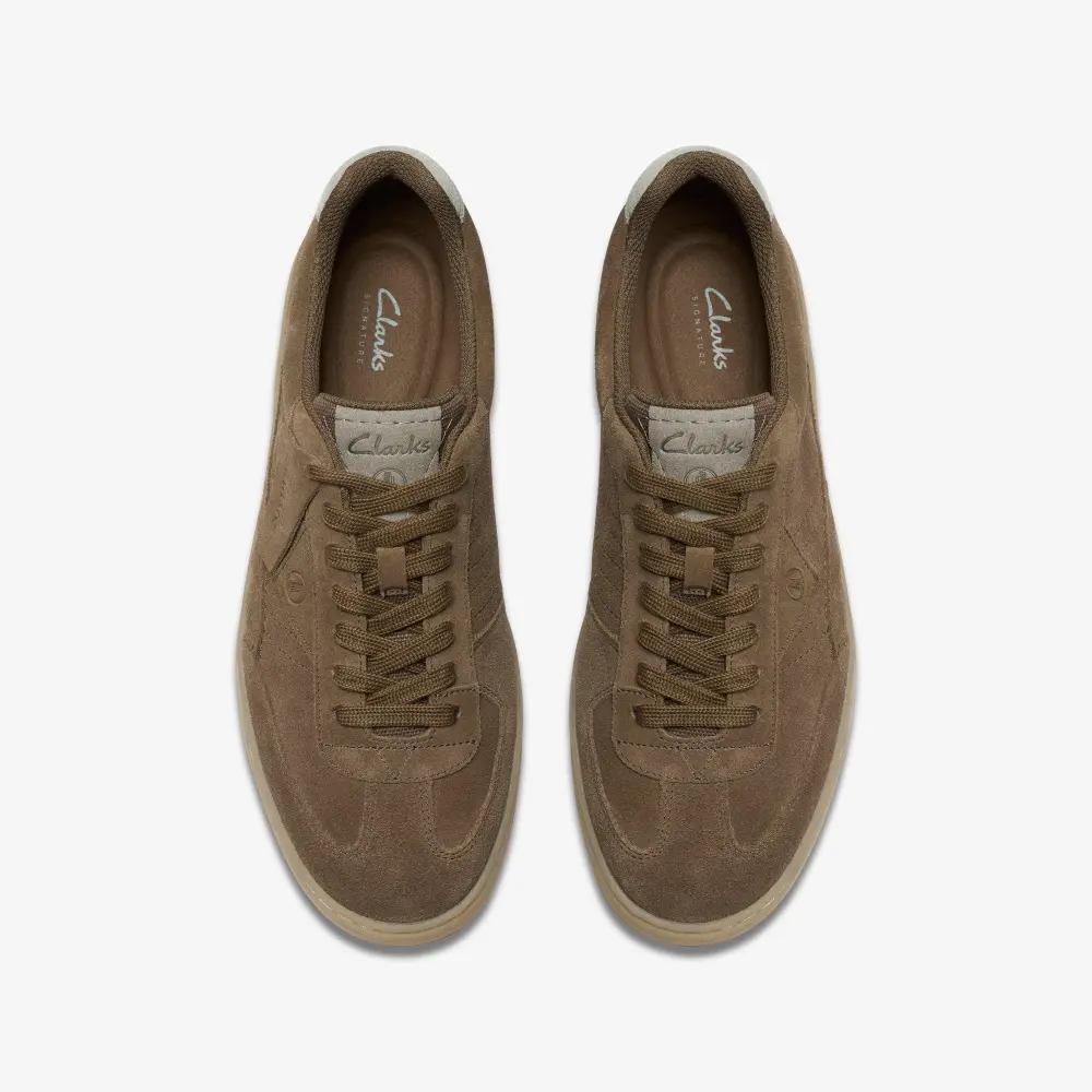 - Khaki suede with quilted textile upper lends a soft, breathable finish