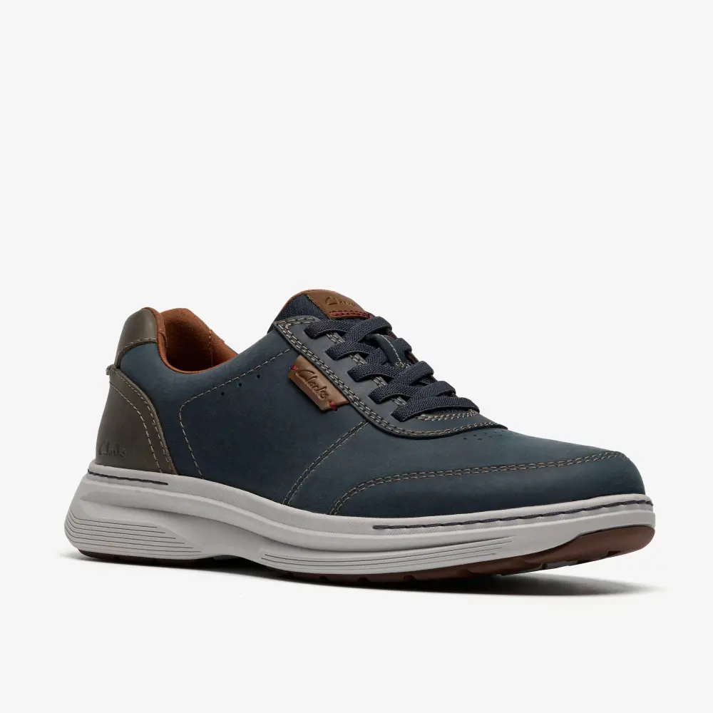 Craftwell Lace leads Clarks men's Essentials into the future with its modern design cues and considered comfort features. Built on a lightweight EVA unit with rubber inserts for improved durability and traction, this silhouette features a padded lining and a molded comfort footbed for all-day ease. Combination leather uppers add a tactile look, while an elasticized lace closure offers easy on/off wear.
