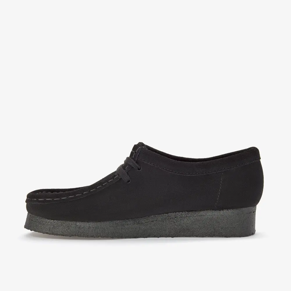 The Wallabee has become an iconic classic in our Clarks Originals collection across the globe thanks to its moccasin construction and structural silhouette. Featuring clean and simple lines, this comfortable lace-up style is crafted from black suede. The finishing touch is our signature crepe sole which continues to stand the test of time.
