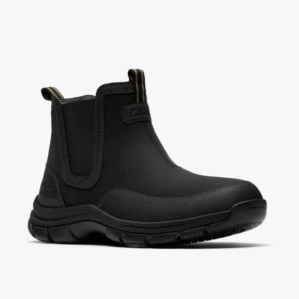 Durable Chelsea boot-inspired silhouette Walpath Easy makes a practical, hardwearing pick. Arriving in a classic black colorway and featuring a sturdy, robust construction, this versatile profile works with a wide array of everyday outfits. Its slip-resistant rubber outsole provides underfoot confidence, while waterproof black leather uppers and stretch panels make it quick and easy to pull on.