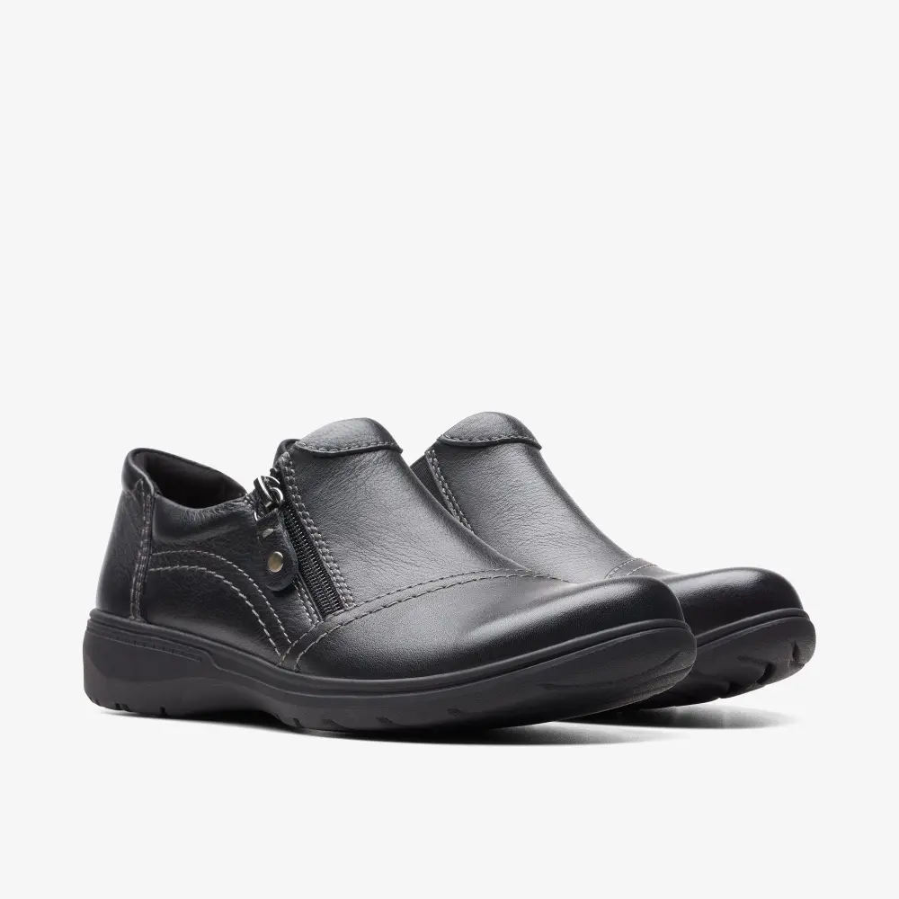 Keeping comfort at its core, our trusty everyday shoe Carleigh Ray is crafted for back-to-work and busy weekend wear. Durable leather uppers in ultra-wearable black wrap the foot perfectly, while our signature underfoot cushioning and a super-grippy sole keep every step grounded.