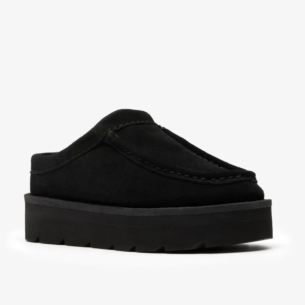 Womens Meare Mule. Black Suede Warmlined Wallabees