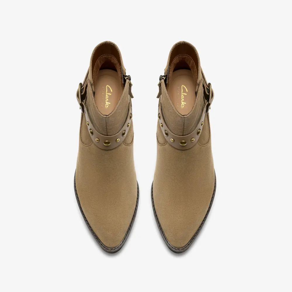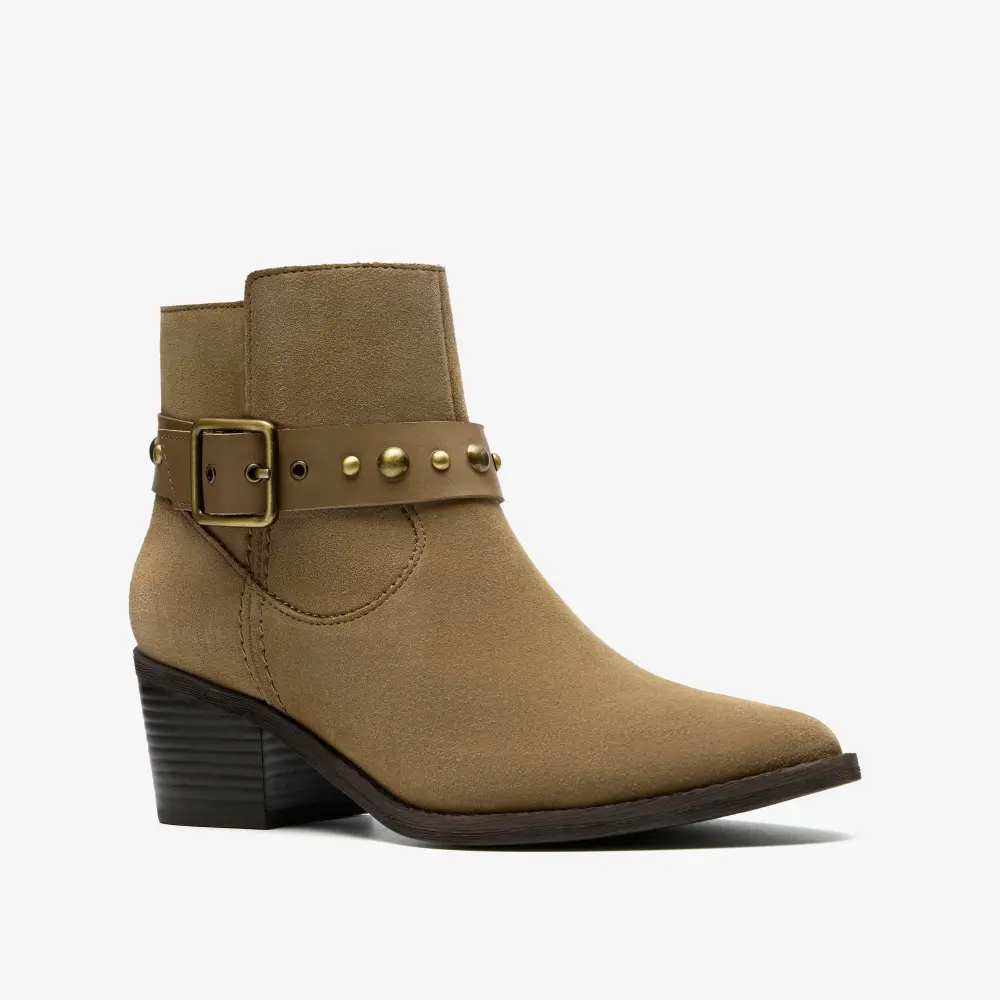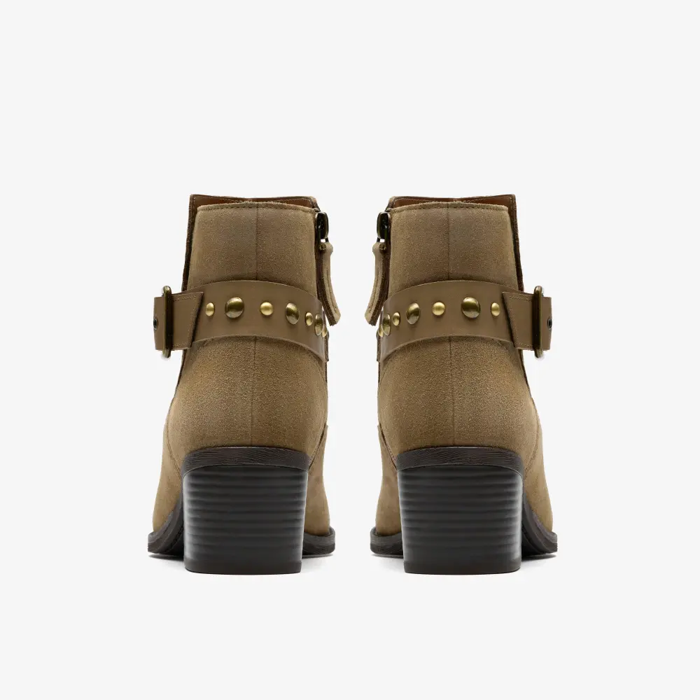 Womens Morzine Buckle Dark Sand Suede Ankle Boots