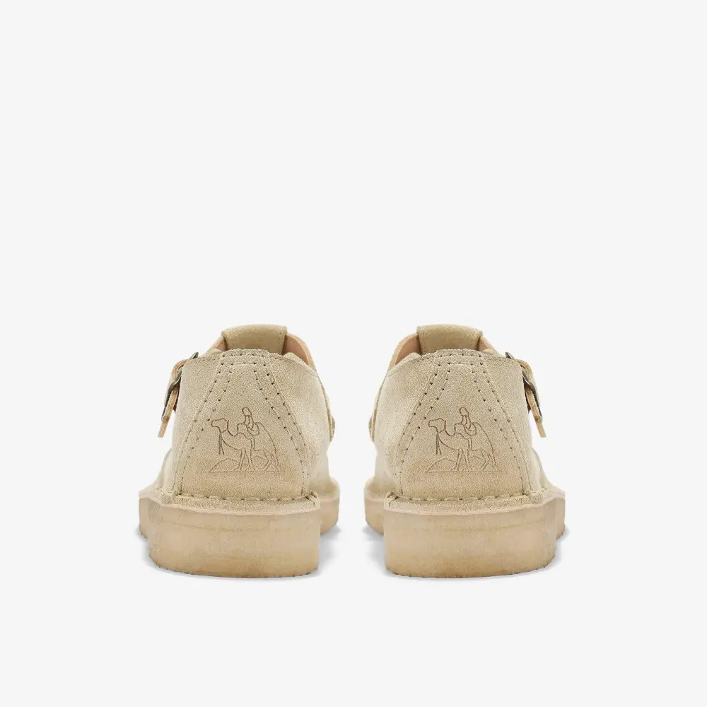 Crafted with suede uppers and a secure buckle fastening, the Nomad T Bar combines functionality with refined details. The hand-stitched apron seam adds a touch of craftsmanship, while the Clarks Originals heat-embossed metallic logo on the sock and the iconic camel Trek Man embossed on the heel counter showcase the shoe’s heritage.