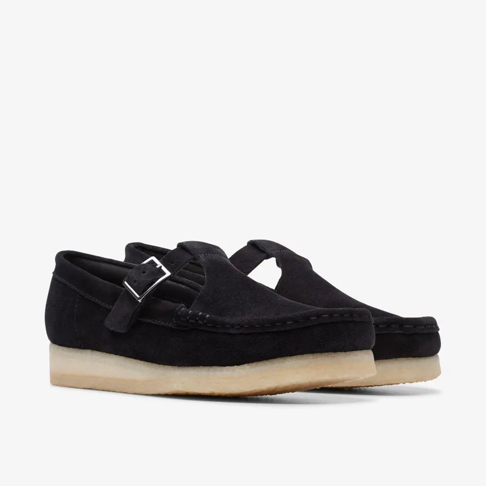 Womens Wallabee T-Bar Black Suede