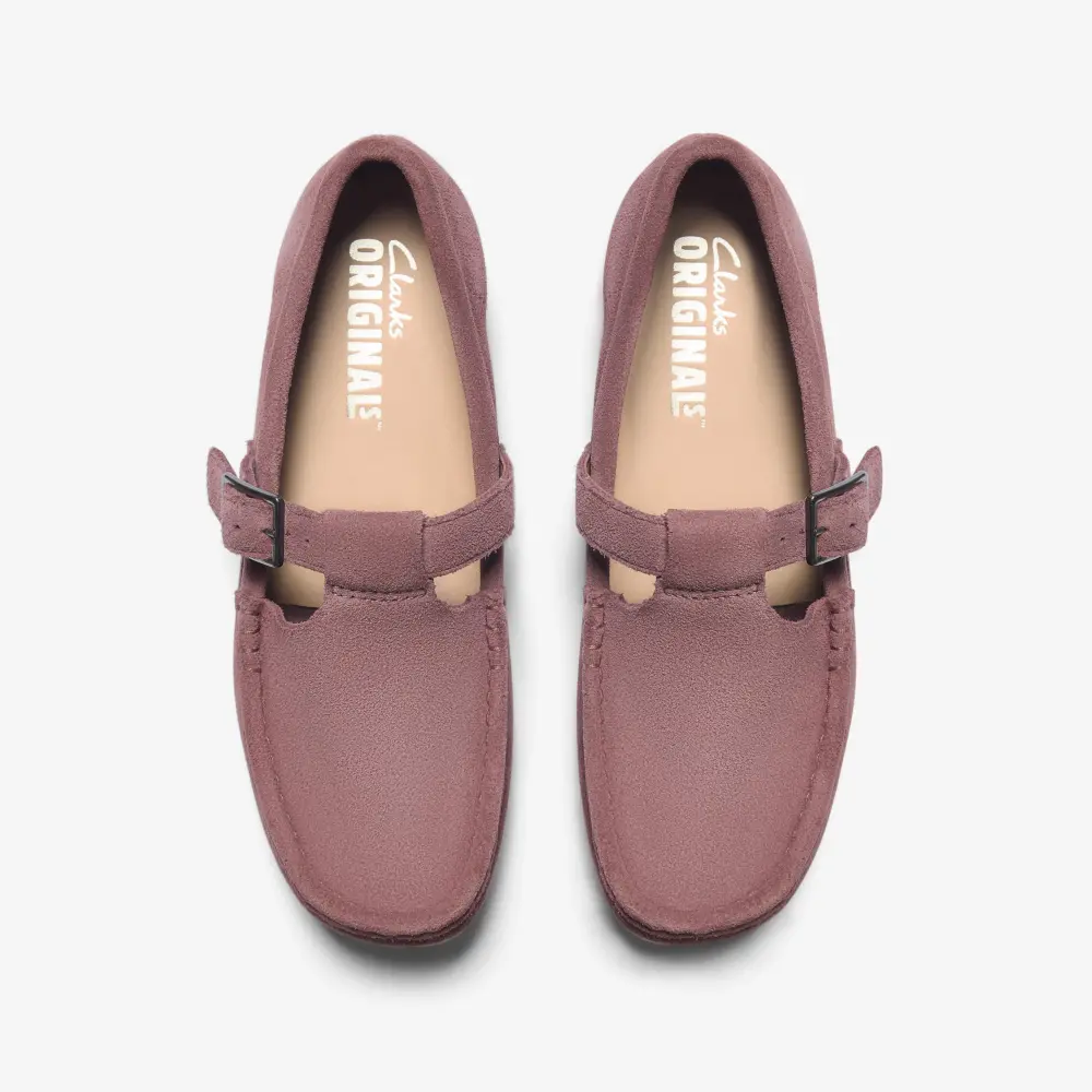 Womens Wallabee T Bar Rose Brown Suede Shoes